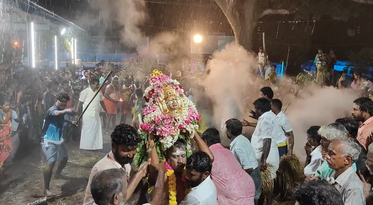 குத்தாலம் அருகே ஓடக்கரை ஸ்ரீ மகா மாரியம்மன் ஆலயத்தில் 12 ஆம் ஆண்டு தீமிதி திருவிழா , கொட்டும் மழையிலும் ஏராளமான பக்தர்கள் தீமித்து சுவாமி தரிசனம் செய்தனர் :-