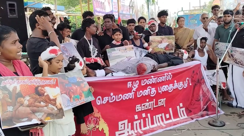 இலங்கை தமிழீழ மண்ணில் செம்மணி என்கிற இடத்தில் மனித புதைகுழி கண்டெடுக்கப்பட்டது.அந்த புதைகுழியில் நூற்றுக்கும் மேற்பட்ட குழந்தைகளுடைய எலும்பு கூடுகள் கண்டெடுக்கப்பட்டது இதை கண்டித்து மயிலாடுதுறை மாவட்டம் சீர்காழியில் தந்தை பெரியார் திராவிடர் கழகத்தின் சார்பில்