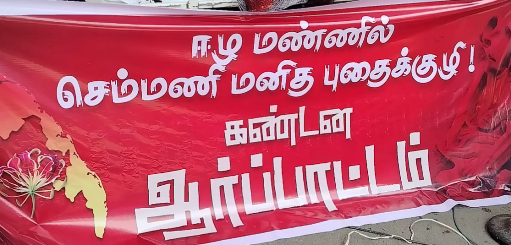 இலங்கை தமிழீழ மண்ணில் செம்மணி என்கிற இடத்தில் மனித புதைகுழி கண்டெடுக்கப்பட்டது.அந்த புதைகுழியில் நூற்றுக்கும் மேற்பட்ட குழந்தைகளுடைய எலும்பு கூடுகள் கண்டெடுக்கப்பட்டது இதை கண்டித்து மயிலாடுதுறை மாவட்டம் சீர்காழியில் தந்தை பெரியார் திராவிடர் கழகத்தின் சார்பில்