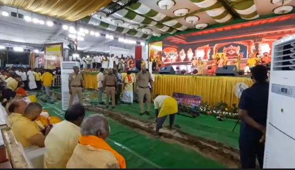 மயிலாடுதுறை மாவட்டம் பூம்புகார் வன்னியர் மகளிர் பெருவிழா மாநாட்டில் இன்னும் சற்று நேரத்தில் பாமக நிறுவனர் மருத்துவர் ராமதாஸ் உரையாற்ற உள்ள நிலையில் பல்லாயிரக்கணக்கான மக்கள் மாநாட்டு பந்தலுக்கு சுமார் அரை கிலோ மீட்டர் தூரத்துக்கு முன்னதாகவே வாகனங்களில் இருந்து இறக்கி விடப்பட்டு உற்சாக கோஷம் எழுப்பியபடி பந்தலை நோக்கி வந்து கொண்டிருக்கிறார்கள்.