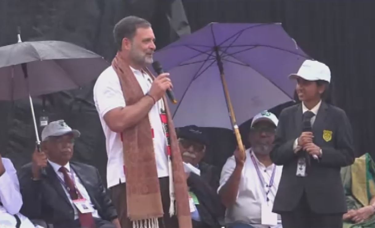 மழையில் மாணவர்களுடன் நனைந்த ராகுல்