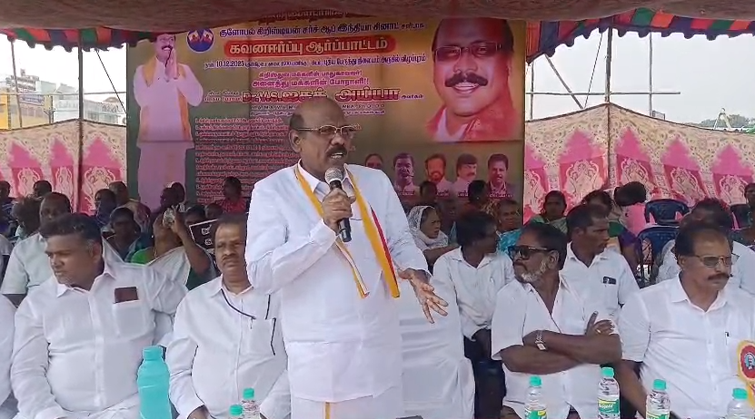விழுப்புரம் நகராட்சி திடலில் தமிழகத்தில் நடைபெற்று வரும் வாக்காளர் சிறப்பு திருத்த பணி இ எஸ் ஐ ஆர் உடனடியாக நிறுத்த வேண்டும் ,கிறிஸ்துவ மக்களுக்கு 10.5 சதவீத இட ஒதுக்கீடு வழங்க வேண்டும் உள்ளிட்ட கோரிக்கைகளை வலியுறுத்தி அகில இந்திய ஜனநாயக மக்கள் கட்சி மற்றும் குளோபல் கிறிஸ்டியன் சர்ச் ஆப் இந்தியா சினாட் சார்பாக கவனயீர்ப்பு ஆர்ப்பாட்டம் நடைபெற்றது. அகில இந்திய ஜனநாயக மக்கள் கட்சி நிறுவனர் தேசிய தலைவர் டாக்டர் வி எஸ் ஐசக் அய்யா தலைமையில் நடைபெற்ற இந்த கவன ஈர்ப்பு ஆர்ப்பாட்டத்தில் மத்திய மாநில அரசை வலியுறுத்தி கண்டன கோஷங்கள் எழுப்பினர்.