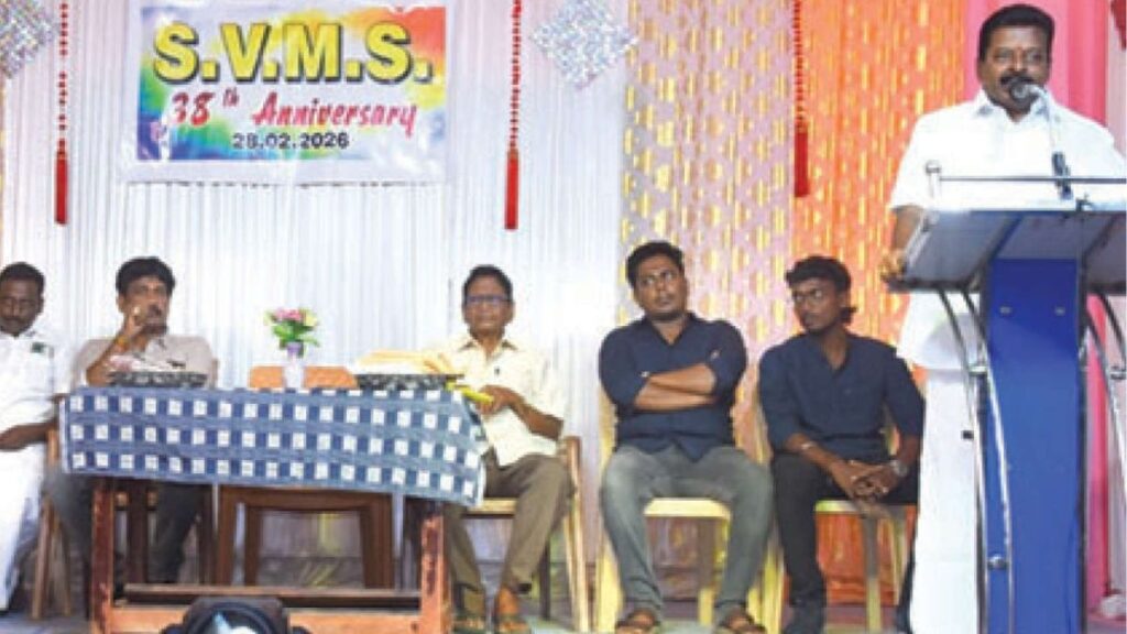 தேனி மாவட்டம் கம்பம் பகுதியில் கல்விச் சேவையில் முத்திரை பதித்து வரும் எஸ்.வி. மெட்ரிக் மேல்நிலைப் பள்ளியின் 38-வது ஆண்டு விழா, பள்ளி வளாகத்தில் சமுதாயத் தலைவர் ஓ.ஆர். குமரேசன் தலைமையில் மிகச் சிறப்பாக நடைபெற்றது. இவ்விழாவில் சிறப்பு விருந்தினராகக் கலந்துகொண்டு உரையாற்றிய ஓ.ஆர். குமரேசன், பள்ளியின் அபார வளர்ச்சியைப் பாராட்டிப் பேசினார். குறிப்பாக, இந்தப் பள்ளியின் தாளாளர் சின்னத்துரை அவர்கள் கல்வித்துறையில் கொண்டுள்ள 30 ஆண்டுகால அனுபவத்தை அவர் நினைவுகூர்ந்தார். ஆசிரியராகவும், தலைமை ஆசிரியராகவும் பணியாற்றிய காலங்களில், தாம் பணியாற்றிய பள்ளிகளில் பயின்ற அனைத்து மாணவர்களும் 100 சதவீதம் தேர்ச்சி பெறும் வகையில் அர்ப்பணிப்புடன் கல்வி போதித்தவர் சின்னத்துரை என்று அவர் புகழாரம் சூட்டினார்.