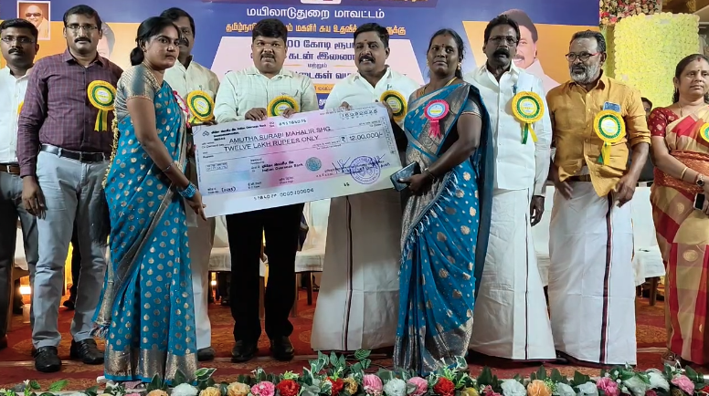 மகளிர் சுய உதவிக்குழுக்களுக்கு வங்கிக்கடனுதவிகள் மற்றும் மகளிர் சுய உதவிக்குழு உறுப்பினர்களுக்கு அடையாள அட்டை வழங்கும் விழா சேலத்தில் நடைபெற்றது. அதன் ஒரு பகுதியாக மயிலாடுதுறை மாவட்டம், மயிலாடுதுறை தனியார் திருமண மண்டபத்தில் மகளிர் சுய உதவிக்குழுக்களுக்கு வங்கிக்கடனுதவிகள் மற்றும் மகளிர் சுய உதவிக்குழு உறுப்பினர்களுக்கு அடையாள அட்டை வழங்கும் விழா