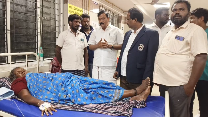 பெரியபாளையம் அருகே ஆட்டோ மீது அரசுப் பேருந்து மோதிய விபத்தில் 6 பெண்கள் காயமடைந்து திருவள்ளூர் அரசு மருத்துவ மனையில் சிகிச்சை பெற்று வருபவர்களை கும்மிடிப்பூண்டி சட்டமன்ற உறுப்பினர் டி.ஜே.கோவிந்தராஜன் நேரில் சென்று நலம் விசாரித்து ஆறுதல் கூறினார்.