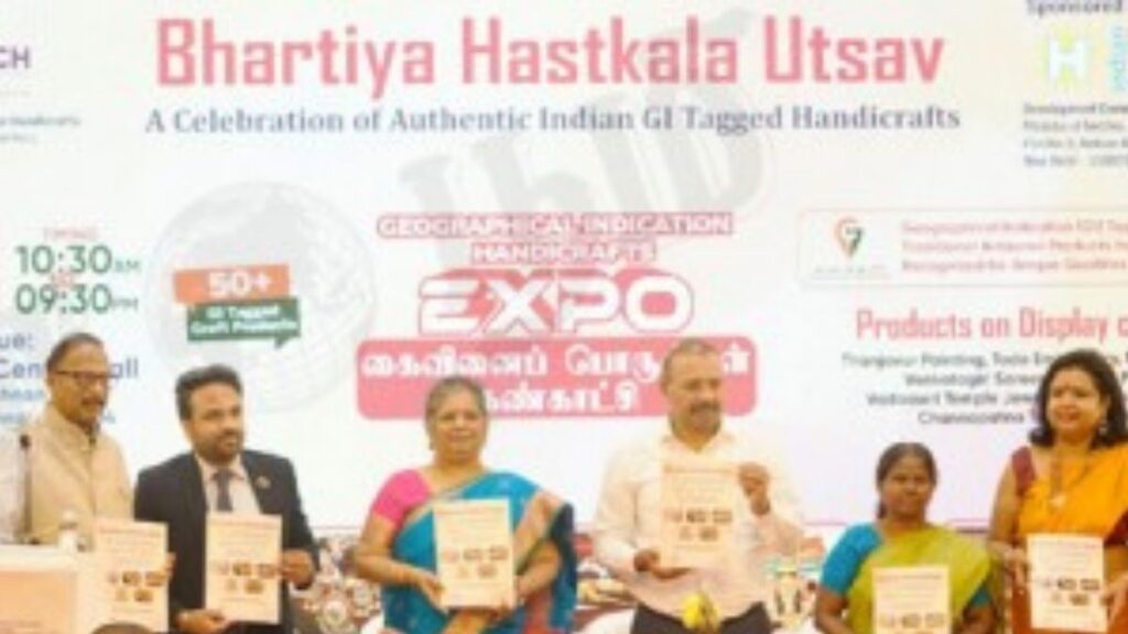 இந்தியாவின் செழுமையான கலாச்சாரம் மற்றும் பாரம்பரியக் கலைகளுக்கு உலகளாவிய அங்கீகாரம் வழங்கும் நோக்கில், இந்திய அரசின் துணிநூல் அமைச்சகம் மற்றும் கைவினை வளர்ச்சி ஆணையர் அலுவலகம் இணைந்து ‘பாரதிய ஹஸ்தகலா உற்சவம்’ (Bharatiya Hastkala Utsav) என்ற நான்கு நாள் பிரம்மாண்ட கண்காட்சியைச் சென்னையில் தொடங்கியுள்ளது. சென்னை மைலாப்பூரில் உள்ள சென்னை சிட்டி சென்டர் மாலில், 2026 ஜனவரி 23 முதல் 26 வரை நடைபெறும் இக்கண்காட்சி, குறிப்பாக புவிசார் குறியீடு (GI Tag) பெற்ற அரிய கைவினைப் பொருட்களின் பெருமையை நகர மக்களிடையே கொண்டு சேர்ப்பதற்காக வடிவமைக்கப்பட்டுள்ளது. இந்தத் தொடக்க விழாவில் தமிழக அரசின் உயர்மட்ட ஐ.ஏ.எஸ் அதிகாரிகள் மற்றும் வர்த்தகத் துறை நிபுணர்கள் கலந்துகொண்டு, இந்தியாவின் கலைப் பொக்கிஷங்களை மீட்டெடுப்பதன் அவசியத்தை வலியுறுத்தினர்.