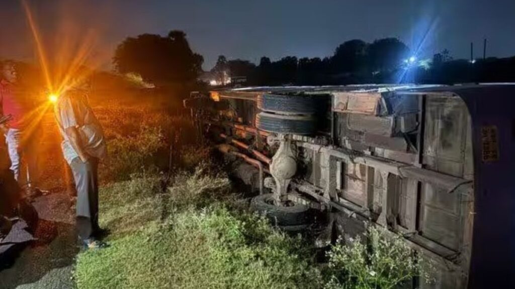 தேளி கிராமம் அருகே பேருந்து சென்று கொண்டிருந்தபோது, எதிர்பாராத விதமாகச் சாலையை விட்டு இடதுபுறம் இறங்கியது. உடனடியாக ஓட்டுநர் ரமேஷ் பேருந்தை மீண்டும் சாலைக்குக் கொண்டு வர முயன்றபோது, வேகம் மற்றும் கட்டுப்பாட்டை இழந்த பேருந்து நிலைதடுமாறி சாலையோரம் தலைகீழாகக் கவிழ்ந்தது. பேருந்து கவிழ்ந்த சத்தம் கேட்டு ஓடி வந்த அக்கம் பக்கத்தினர், உடனடியாகப் பேருந்தின் உள்ளே சிக்கியிருந்தவர்களை மீட்டனர். அதிர்ஷ்டவசமாக ஓட்டுநர், நடத்துநர் மற்றும் பயணிகள் மூவரும் லேசான சிராய்ப்பு காயங்களுடன் உயிர் தப்பினர்.