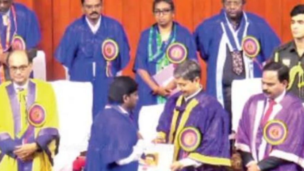கடலூர் மாவட்டம் சிதம்பரத்தில் உள்ள வரலாற்றுப் புகழ்மிக்க அண்ணாமலை பல்கலைக்கழகத்தின் பட்டமளிப்பு விழா, அங்குள்ள சாஸ்திரி அரங்கில் நேற்று மிகச்சிறப்பாக நடைபெற்றது. இவ்விழாவில் தமிழக ஆளுநர் ஆர்.என்.ரவி அவர்கள் கலந்துகொண்டு, 1,014 மாணவ-மாணவியர்களுக்குப் பட்டங்களையும், பல்வேறு பாடப்பிரிவுகளில் முதலிடம் பிடித்த 45 சாதனையாளர்களுக்குத் தங்கப் பதக்கங்கள் மற்றும் அறக்கட்டளை ரொக்கப் பரிசுகளையும் வழங்கிக் கௌரவித்தார். விழா மேடையில் ஆளுநர் ஒவ்வொரு மாணவருக்காகவும் பட்டங்களை வழங்கிக் கொண்டிருந்தபோது, விக்கிரவாண்டியைச் சேர்ந்த வரலாற்றுத்துறை ஆராய்ச்சி மாணவர் புஷ்பராஜ் என்பவர், திடீரென தமிழக முதலமைச்சர் மு.க.ஸ்டாலின் அவர்களின் புகைப்படத்தைக் கையில் ஏந்தியபடி ஆளுநரிடம் பட்டம் பெற்றது அங்கிருந்தோரை வியப்பில் ஆழ்த்தியது. கல்வித்துறை அமைச்சர் கோவி.செழியன் இந்த விழாவைப் புறக்கணித்திருந்த சூழலில், மாணவரின் இந்தச் செயல் அரசியல் மற்றும் கல்வி வட்டாரத்தில் விவாதங்களைக் கிளப்பியுள்ளது.