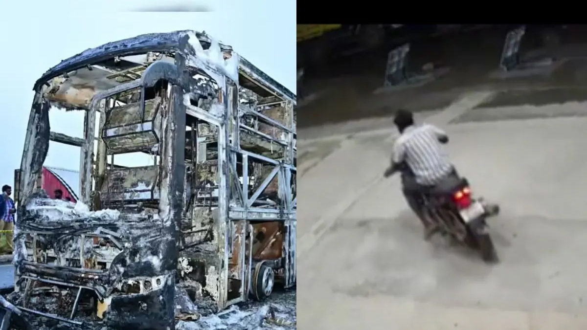 ஹைதராபாத்தில் இருந்து பெங்களூருக்கு 41 பேருடன் புறப்பட்ட ஆம்னி பேருந்து, கர்னூல் மாவட்டம் சின்ன தெக்கூர் அருகே அதிகாலை 3.30 மணியளவில் சென்றுகொண்டிருந்தது. அப்போது இருசக்கர வாகனம் ஒன்று திடீரென பேருந்தை மோதி அதன் கீழ் சிக்கியது. அதனைத் தொடர்ந்து, பேருந்தின் எஞ்சின் பகுதியில் தீப்பற்றி கண் இமைக்கும் நேரத்தில் முழு வாகனமும் எரிந்து விட்டது.