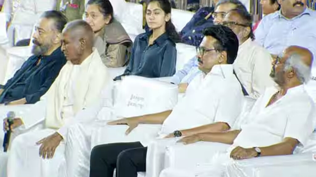 இந்த விழாவில், தமிழக முதல்வர் மு.க. ஸ்டாலின் சிறப்பு விருந்தினராக பங்கேற்றார். மேலும், நடிகர்கள் ரஜினிகாந்த், கமல்ஹாசன் உள்ளிட்ட திரையுலக பிரபலங்களும் கலந்து கொண்டனர்.