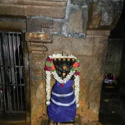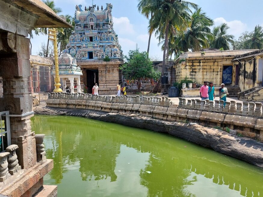 பெரிய மண்டபத்தைக் கடந்து சென்றால் துவாரபாலகர்கள் காணப்படுகிறார்கள். உள்ளே கொடிரம், பலிபீடம், நந்திவிக்ரகம் ஆகியவை காணப்படுகின்றன. அங்கே சென்றால் முதலில் காணப்படுவது “ஓம்| என்னும் வடிவில் அமைந்துள்ள பு~;கரணி. இது ஒரு சுனைநீர் ஆகும். இதிலிருந்து சுவாமிக்கு அபிN~கத்திற்கு தீர்த்தம் எடுக்கப்படுகிறது.