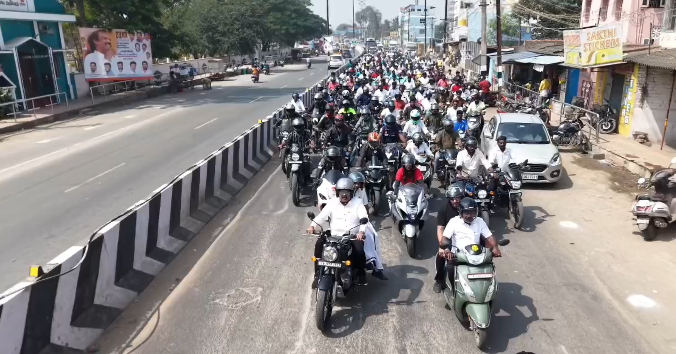தமிழ்நாடு முதலமைச்சர் மு.க.ஸ்டாலின் பிறந்த நாளை முன்னிட்டு திருவள்ளூரில் சாலை பாதுகாப்பு மற்றும் போதை ஒழிப்பு விழிப்புணர்வு பிரச்சாரம் பைக் பேரணி திருவள்ளூர் சட்டமன்ற உறுப்பினர் வி.ஜி.ரஜேந்திரன் தலைமையில் நடைபெற்றது. இதில் மருத்துவ துறை அமைச்சர் மா.சுப்ரமணியன், திரைப்பட நடிகர் ஆர்யா ஆகியோர் கலந்து கொண்டு சாலை பாதுகாப்பு விழிப்புணர்வு மற்றும் போதை ஒழிப்பு பிரச்சாரம் இரு சக்கர வாகன பேரணியை தொடங்கி வைத்து பின்னர் பேரணியில் பங்கேற்று இரு சக்கர வாகனத்தை ஓட்டி சென்றார். இந்த விழிப்புணர்வு பரப்புரை பாதசாரிகள், மிதிவண்டி ஓட்டுநர்கள், இரு சக்கர வாகன ஓட்டிகளிடையே விழிப்புணர்வு ஏற்படுத்தும் வகையில் திருவள்ளூர் அரசு மருத்துவ கல்லூரி சாலையில் தொடங்கி பேரணியில் 500-க்கும் மேற்பட்ட இளைஞர்கள் கலந்து கொண்டு இரு சக்கர வாகனங்களில் திருவள்ளூரின் முக்கிய வீதிகளின் வழியாக ஓட்டி சென்று மணவாளநகர் இந்திராகாந்தி சிலை வழியாக சுற்றி சென்று சட்ட மன்ற உறுப்பினர் அலுவலகத்தில் நிறைவடைந்தது. இந்த பேரணியில் சாலை விதிகளைப் பின்பற்றுவதன் அவசியத்தை இளைஞர்கள் மற்றும் வாகன ஓட்டிகளிடம் எடுத்துரைக்கப்பட்டது. இதனை தொடர்ந்து செய்தியாளர்களை சந்தித்த அமைச்சர். மா.சுப்ரமணியன், பான்பராக் போன்ற போதை வஸ்துகளுக்கு கர்நாடகா போன்ற மாநிலங்களில் தடையில்லை என்றும், தமிழ்நாட்டில் மட்டும் தடை செய்யப்பட்டுள்ளதாகவும், பான்பராக், குட்கா பொருட்கள் குட்கா பொருட்கள் கர்நாடகா எல்லையில் இருந்து எளிதாக உள்ளே வருகின்றன எனவும், அவற்றை காவல் துறையினர் தடுத்து வருகின்றனர் எனவும், காய்கறி, பழங்கள், பூக்கூடைகளில் மறைத்து எடுத்து வருகின்றனர் எனவும், தமிழகத்தில் கஞ்சா பயிரிடுவது ஜீரோ கல்டிவேஷன் எனவும், கஞ்சா இல்லை என கூறவில்லை எனவும், ஒடிசா உள்ளிட்ட மாநிலங்களில் இருந்து வருவதை முடிந்தளவு காவல் துறையினர் தடுத்து வருகின்றனர் எனவும், விற்பனை செய்வோரை குண்டாசில் கைது செய்து சொத்துக்கள் பறிமுதல் செய்யப்படுகின்றன எனவும் அவர் தெரிவித்தார். முந்தைய ஆட்சியில் கஞ்சா பயிரிடப்பட்டிருந்தது, இப்போது அது ஜீரோ எனவும், மலைப்பகுதிகளில் ஒரு தொழிலாக செய்து வந்தனர்; இப்போது இல்லை என்பதை திரும்ப திரும்ப கூறி வருகிறேன் எனவும் அவர் தெரிவித்தார். பறவை காய்ச்சல் குறித்த கேள்விக்கு அவர் பதிலளிக்காமல் சென்றார்.