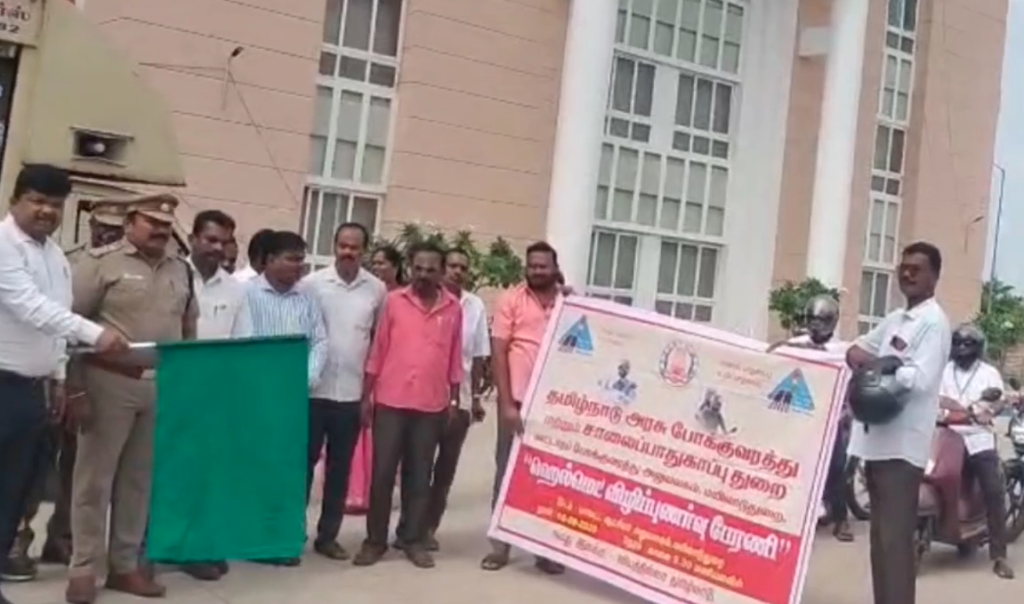மயிலாடுதுறை மாவட்ட ஆட்சியர் அலுவலகத்தில் தலைக்கவசம் அணிவதன் அவசியத்தை வலியுறுத்தி விழிப்புணர்வு பேரணியை மாவட்ட ஆட்சியர் ஸ்ரீகாந்த் கொடியசைத்து துவக்கி வைத்தார்.