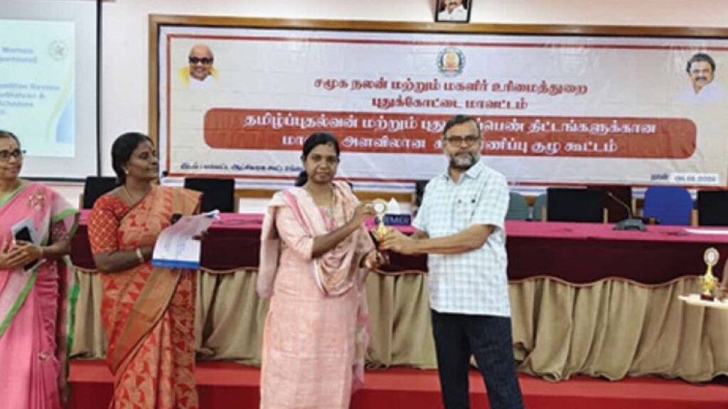புதுக்கோட்டை மாவட்ட ஆட்சியர் அலுவலகத்தில் நடைபெற்ற அரசுப் பணிகள் குறித்த ஆய்வுக் கூட்டத்தில், மக்கள் நலத்திட்டங்களை அடித்தட்டு மக்களிடம் கொண்டு சேர்ப்பதில் அர்ப்பணிப்புடன் பணியாற்றிய அலுவலர்களை ஊக்குவிக்கும் நிகழ்வு நடைபெற்றது. இதில், தமிழ்நாடு அரசின் பல்வேறு நலத்திட்டங்களைச் சரியான காலத்திற்குள், எவ்விதத் தொய்வுமின்றி விரைவாகவும், சிறப்பாகவும் பொதுமக்களுக்கும் மாணவர்களுக்கும் சென்றடைய உறுதுணையாக இருந்தமைக்காக, புதுக்கோட்டை அரசினர் தொழிற்பயிற்சி நிலையத்தின் (ITI) பயிற்சி அலுவலர் எஸ். கிருஷ்ணன் அவர்களுக்கு ‘சிறந்த நோடல் அலுவலர்’ விருது வழங்கப்பட்டது. இந்த உயரிய விருதினை புதுக்கோட்டை மாவட்ட ஆட்சித்தலைவர் மு. அருணா அவர்கள் வழங்கி, பொன்னாடை அணிவித்துச் சிறப்பித்தார்.