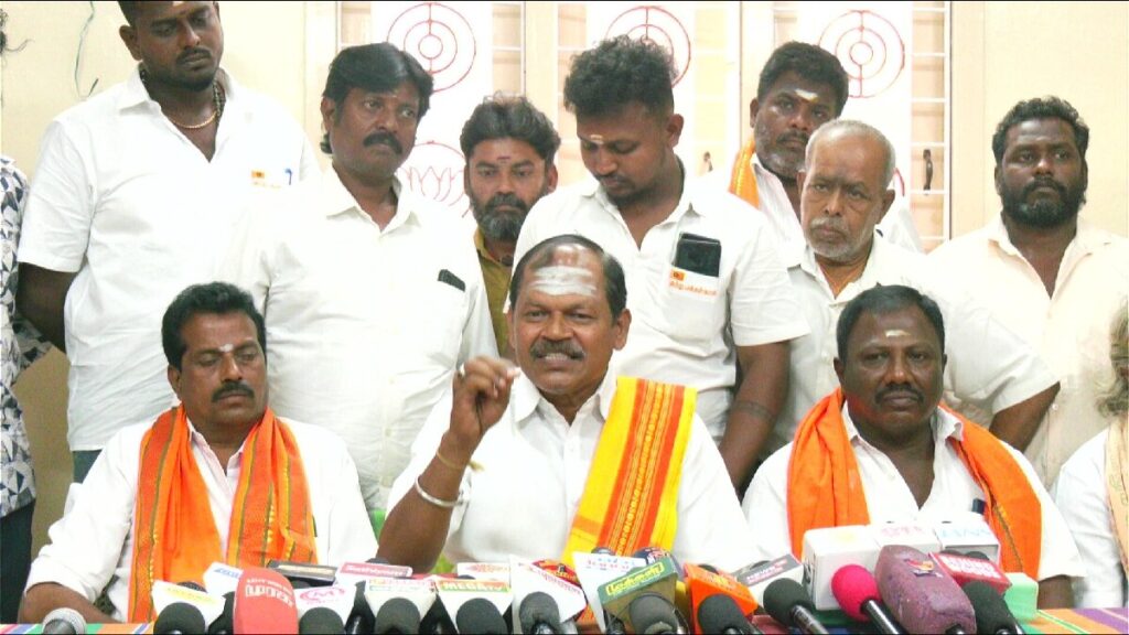 கரூரில் 41 பேர் உயிரிழந்த சம்பவத்தை காரணம் காட்டி தமிழகத்தில் எதிர்கட்சிகளை பிரச்சாரம் செய்ய விடாமல் திமுக முடக்க நினைப்பதாக குற்றம்சாட்டிய அவர், இதே போன்ற பிரச்சனையில் நடிகர் அல்லுஅர்ஜுன் கைது செய்யப்பட்டது போல, விஜய் மீது வழக்கு பதிவு செய்து அவரை கைது செய்ய வேண்டும் என வலியுறுத்திய அர்ஜுன்சம்பத், தேர்தல் ஆணையம் தமிழக வெற்றி கழகத்தை தடை செய்ய வேண்டும் என கேட்டுக் கொண்டார். தனியார் தொலைக்காட்சி நடத்தும் பிக்பாஸ் நிகழ்வு கலாச்சார சீர்கேடு என்பதால் அந்நிகழ்ச்சிக்கு தடை விதிக்க வேண்டும் என்றும் இதற்காக சட்டரீதியான நடவடிக்கைகளை மேற்கொள்ள இருப்பதாக தெரிவித்தார். தமிழகத்தில் அதிமுக பாஜக கூட்டணி பலம் வாய்ந்திருப்பதாகவும், திமுக தன்னுடைய கூட்டணி கட்சிகளை அடக்கி வைத்திருப்பது போல பாஜக எப்போதும் செய்யாது என்றார்.