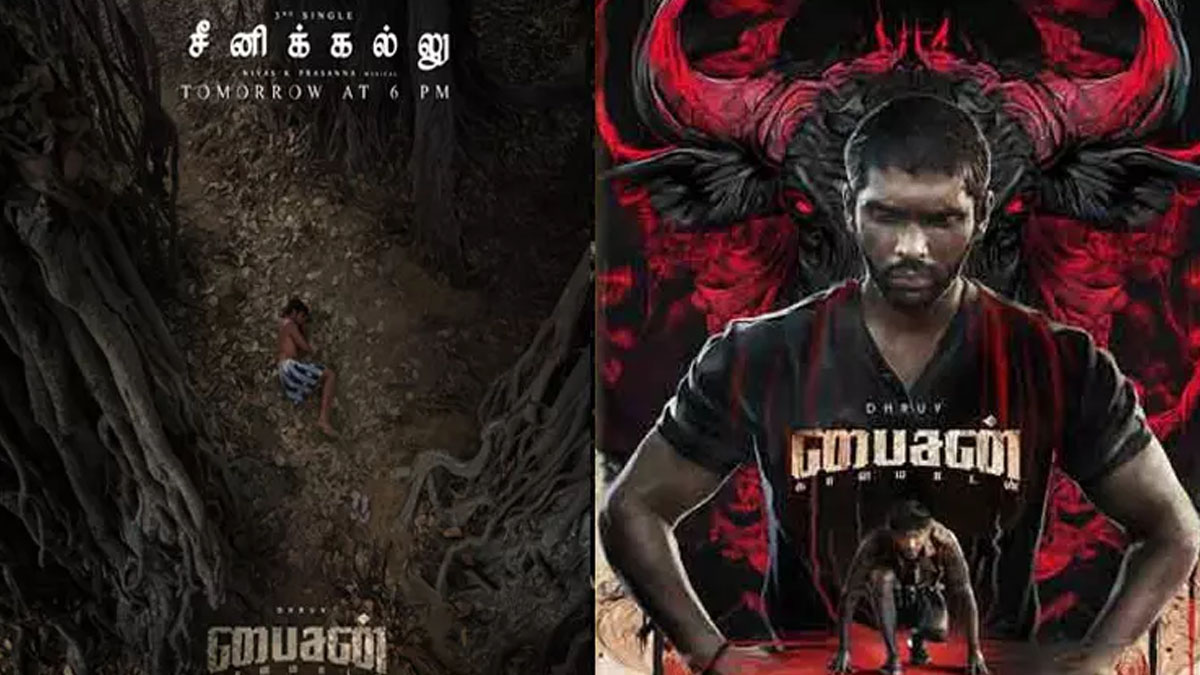இந்நிலையில், பைசன் படத்தின் மூன்றாவது பாடலான “சீனிக்கல்லு” நாளை மாலை 6 மணிக்கு வெளியாகும் என படக்குழு அறிவித்துள்ளது. முதல் இரண்டு பாடல்கள் வெற்றிகரமாகப் பட்டியலில் இடம் பெற்றுள்ள நிலையில், புதிய பாடல் எப்படி இருக்கும் என ரசிகர்கள் ஆவலுடன் எதிர்பார்த்துள்ளனர்.