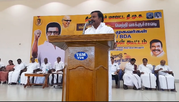 வாக்காளர் பட்டியலை சரியாக செய்தோம் என்றால் நமக்கு பாதி வெற்றி உறுதி செய்யப்பட்டது. திமுக கூட்டணியில் இருப்பவர்கள் வெளியே சென்று விடுவார்கள் என எடப்பாடி பழனிச்சாமி கூறினார். ஆனால் நமது கூட்டத்தில் இருந்து இதுவரை யாரும் வெளியே செல்லவில்லை. ஆனால் அவருடன் இருப்பவர்களில் பாமக இரண்டாக பிரிந்து விட்டது. தேமுதிக வெளியேறிவிட்டது. சின்னம்மா, டிடிவி, ஓபிஎஸ், செங்கோட்டையன் என பல பிரிவுகளாக பிரிந்திருக்கிறார்கள். அவர்கள் தான் செதில் செதிலாக பிரிந்திருக்கிறார்கள். நாம் அப்படியேதான் ஒற்றுமையாக இருக்கிறோம். தளபதியை மீண்டும் இரண்டாவது முறையாக முதல்வராக உருவாக்கி ஆட்சி கட்டிலில் அமர வைப்பது தான் நமது கடமை. இரண்டாவது முறையாக தமிழக முதல்வராக முக ஸ்டாலினை பதவி ஏற்க வைப்பது அவருக்காக அல்ல, கழகத்திற்காக அல்ல, நம்முடைய நன்மைக்காக பொது மக்களின் நன்மைக்காக. நமது ஆட்சியில் பொதுமக்களுக்காக பல்வேறு நலத்திட்ட உதவிகள் செய்யப்பட்டு வருகிறது. இந்த உதவிகள் நலத்திட்டங்கள் தொடர்ந்து கிடைப்பதற்கு தான்.