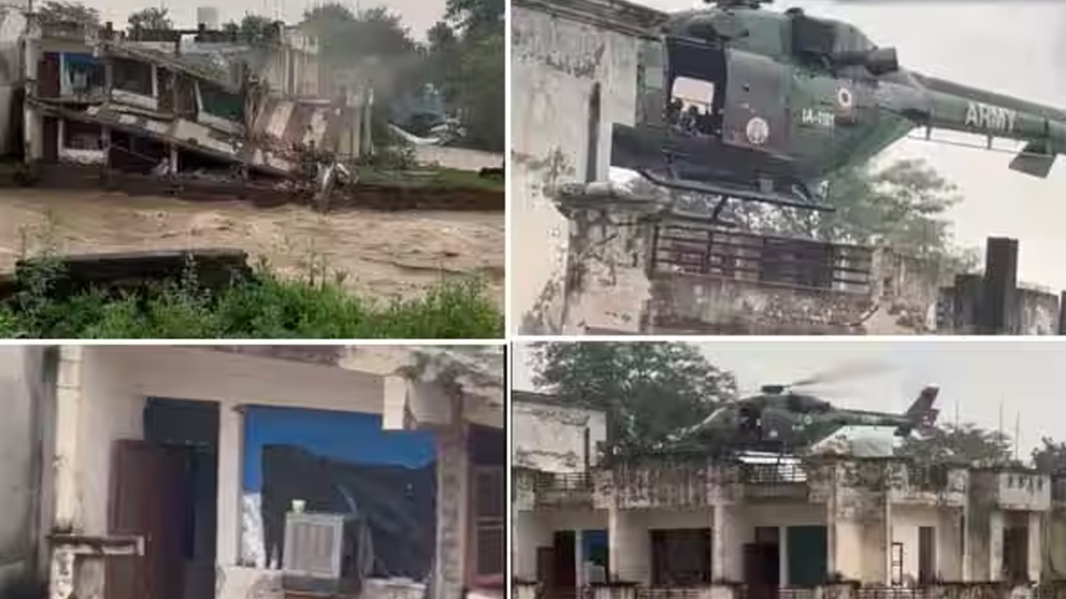 அதன் பிறகு சில வினாடிகளில் கட்டடம் இடிந்தது. பல உயிர்களை காப்பற்றிய ராணுவ வீரர்களின் செயலுக்கு பாராட்டுகள் குவிந்து வருகிறது. இது குறித்து இந்திய ராணுவம் வெளியிட்ட அறிக்கையில் கூறியிருப்பதாவது: ஆபத்தான நிலையில் இடிந்து விழும் சூழலில் பழைய கட்டடம் இருந்த போதிலும், ராணுவ விமானிகள் ஹெலிகாப்டரில் சென்று பல உயிர்களை காப்பாற்றினர்.