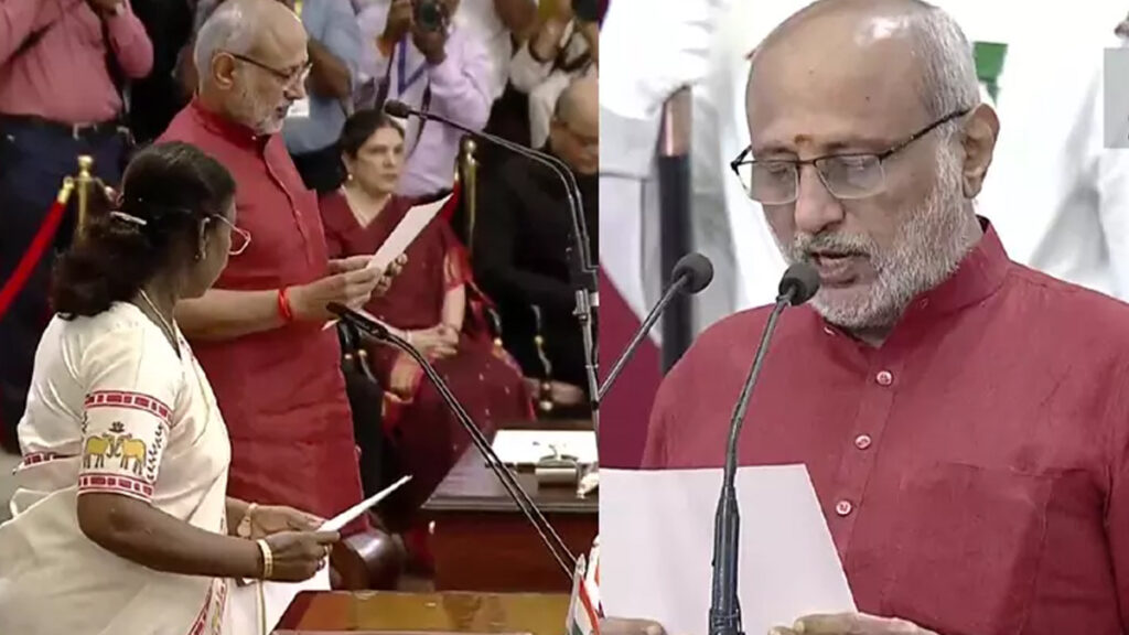 68 வயதான ராதாகிருஷ்ணன், துணை ஜனாதிபதி தேர்தலில் 452 ஓட்டுகளை பெற்று, ‘இண்டி’ கூட்டணி வேட்பாளர் சுதர்சன் ரெட்டியை தோற்கடித்தார். அதன் பின்னர், இன்று டில்லியில் நடைபெற்ற நிகழ்ச்சியில் அவர் பதவியேற்றுக்கொண்டார்.