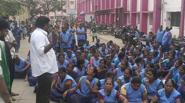 செங்கல்பட்டு: 4 மாத சம்பளம் வழங்காததை கண்டித்து செங்கல்பட்டு அரசு மருத்துவமனை ஒப்பந்த தொழிலாளர்கள் போராட்டத்தில் ஈடுபட்டனர்.
