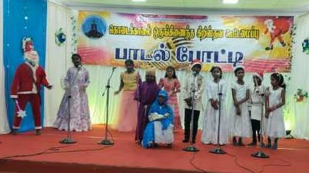 கொடைக்கானலில் உள்ள கிறிஸ்துமஸ் கூட்டமைப்பின் சார்பில் கிறிஸ்துமஸ் விழாவை முன்னிட்டு பள்ளி மாணவ, மாணவிகளுக்கான பாடல் போட்டி வியாழக்கிழமை அன்று உற்சாகமாக நடைபெற்றது. கொடைக்கானலில் உள்ள ஒருங்கிணைந்த கிறிஸ்துமஸ் கூட்டமைப்பு சார்பில், கிறிஸ்துமஸ் பண்டிகையைக் கொண்டாடும் விதமாக, பள்ளி மாணவர்களுக்கு இடையேயான பிரத்யேகப் பாடல் போட்டி நடத்தப்பட்டது. இந்தப் போட்டியில் பல்வேறு பள்ளிகளைச் சேர்ந்த 150-க்கும் மேற்பட்ட மாணவ, மாணவிகளும், பல்வேறு தேவாலயங்களைச் சேர்ந்த பாடல் குழுவினரும் கலந்துகொண்டு தங்கள் இசைத் திறமைகளை வெளிப்படுத்தினர். இந்த விழாவுக்கு அருட்பணியாளர் அந்தோணி தலைமை வகித்தார். டி.இ.எல்.சி. தேவாலய அருட்பணியாளர் டென்சிங், பி.பி.சி. தேவாலய அருட்பணியாளர் சிமியோன், சி.எஸ்.ஐ. தேவாலய அருட்பணியாளர் எபிநேசர் ஆகியோர் முன்னிலை வகித்தனர்.