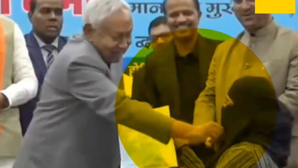 பீகாரில் நடைபெற்ற அரசு நிகழ்ச்சியொன்றில், முஸ்லிம் பெண் மருத்துவரின் ஹிஜாபை முதல்வர் நிதிஷ் குமார் இழுத்ததாக கூறப்படும் சம்பவம் பெரும் சர்ச்சையை ஏற்படுத்தியுள்ளது. இந்த சம்பவம் தொடர்பான காணொளி சமூக வலைதளங்களில் வைரலாகி, அரசியல் வட்டாரங்களில் கடும் விமர்சனங்களை எழுப்பியுள்ளது.