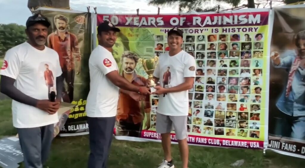 நடிகர் ரஜினிகாந்த் நடிப்பில் ‘கூலி’ திரைப்படம் உலகம் முழுவதும் நேற்று வெளியானது. நடிகர் ரஜினிகாந்தின் பொன்விழா ஆண்டில் வெளியான திரைப்படத்தை அமெரிக்காவில் வாழும் இந்தியர்கள் கிரிக்கெட் போட்டி தொடர் நடத்தி கொண்டாடினர். அமெரிக்காவின் டெலவர் மாநிலத்தில் நடைபெற்ற இந்த கிரிக்கெட் தொடரில் 8 அணிகள் பங்கேற்றன.