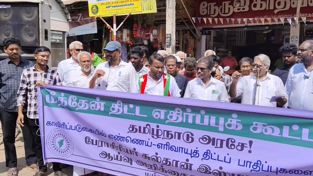 காவிரி டெல்டா பகுதிகளை பாதுகாக்கப்பட்ட வேளாண் மண்டலமாக 2021 ஆம் ஆண்டு தமிழக அரசு அறிவித்தது. ஆனால் புதிய திட்டங்களுக்கு அனுமதி தராத நிலையில், ஏற்கனவே உள்ள மீத்தேன் உள்ளிட்ட எண்ணெய் எரிவாயு திட்டங்கள் செயல்படுத்தப்பட்டு வருகிறது இதன் காரணமாக ஏற்பட்டுள்ள பாதிப்புகள் குறித்து ஆய்வு செய்ய பேராசிரியர் சுல்தான் இஸ்மாயில் குழு ஒன்றை தமிழக அரச அமைத்தது. பல ஆண்டுகளைக் கடந்தும் ஆய்வு அறிக்கையை தமிழக அரசு வெளியிடவில்லை. இதனை கண்டித்தும் பழைய திட்டங்களை நிறுத்த வலியுறுத்தியும் தமிழக அரசை கண்டித்து மீத்தேன் திட்ட எதிர்ப்பு கூட்டமைப்பு சார்பில் கண்டன ஆர்ப்பாட்டம் நடைபெற்றது. பேருந்து நிலையம் நடைபெற்ற ஆர்ப்பாட்டத்திற்கு, கூட்டமைப்பின் தலைமை ஒருங்கிணைப்பாளர் பேராசிரியர் மீத்தேன் ஜெயராமன் தலைமை தாங்கினார். பல்வேறு இயக்கங்களைச் சார்ந்தவர்கள் பங்கேற்ற கோரிக்கைகளை வலியுறுத்தி கண்டனம்.