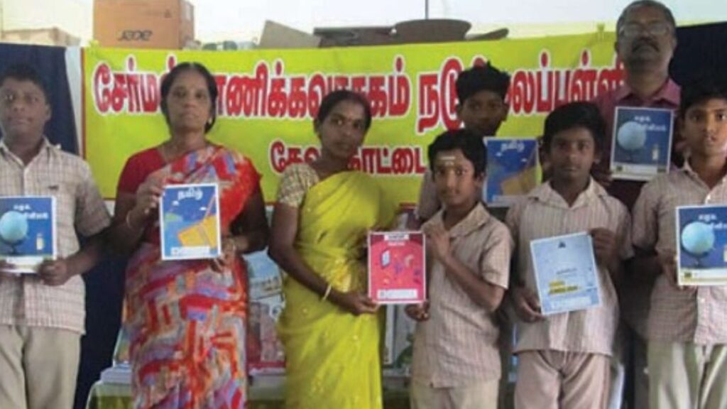 அதனைத் தொடர்ந்து நடைபெற்ற புத்தக விநியோக விழாவிற்குப் பள்ளியின் தலைமை ஆசிரியர் லெ. சொக்கலிங்கம் தலைமை தாங்கினார். அவர் பேசுகையில், “மாணவர்கள் தங்களது பாடங்களைச் சுமையின்றிப் படிக்கவே இந்தப் பருவமுறை கல்வித் திட்டம் கொண்டு வரப்பட்டுள்ளது. அரசு வழங்கும் இந்த விலையில்லாப் புத்தகங்களை நன்முறையில் பயன்படுத்தி, மாணவர்கள் கல்வியில் சிறந்து விளங்க வேண்டும்” என அறிவுறுத்தினார்.