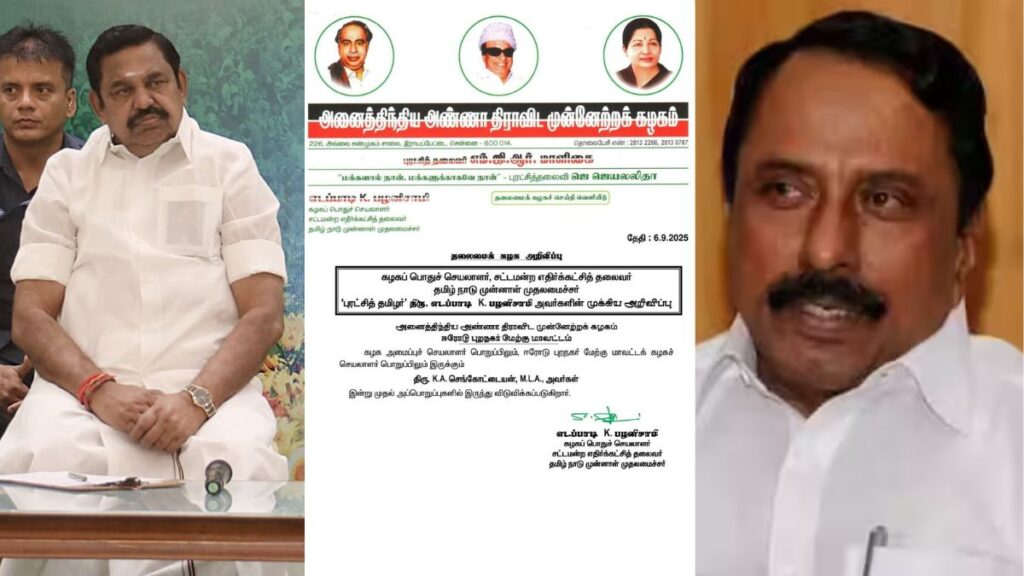 அனைத்திந்திய அண்ணா திராவிட முன்னேற்றக் கழகத்தின் பொதுச்செயலாளர் எடப்பாடி கே. பழனிசாமி (இபிஎஸ்), இன்று திண்டுக்கல்லில் வெளியிட்ட ஓர் அறிக்கையில், கட்சியின் மூத்த தலைவரும், ஈரோடு புறநகர் மேற்கு மாவட்ட கழக அமைப்புச் செயலாளருமான செங்கோட்டையன், அப்பொறுப்பிலிருந்து விடுவிக்கப்படுவதாக அறிவித்துள்ளார். இந்த அறிவிப்பு, கடந்த சில வாரங்களாக கட்சியின் மூத்த தலைவர்கள் இடையே நடந்து வந்த சமரசப் பேச்சுவார்த்தைகளுக்கு ஒரு முற்றுப்புள்ளி வைப்பதாகப் பார்க்கப்படுகிறது.