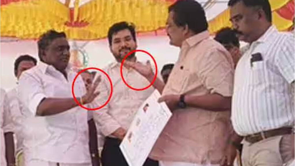 விழா ஏற்பாடுகளில் எம்எல்ஏ மகாராஜனின் புகைப்படம் மட்டும் வரவேற்பு பேனரில் இடம்பெற்றிருந்தது. எம்பி தங்க தமிழ்ச்செல்வனின் படம் இடம்பெறாததை வைத்து அவர் கடும் அதிருப்தியடைந்தார். இதற்கிடையில் நலத்திட்ட உதவி அட்டைகளை வழங்கும் தருணத்தில், ‘நான் தான் வழங்க வேண்டும்’ என தங்க தமிழ்ச்செல்வன் கூற, அதற்கு எதிர்ப்பு தெரிவித்து அட்டையை அவரது கையிலிருந்து பிடுங்க முயன்றார் எம்எல்ஏ மகாராஜன்.