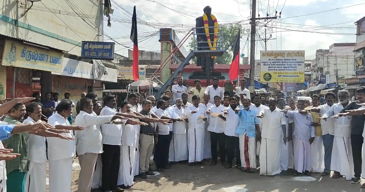 பேரறிஞர் அண்ணாவின் 117வது பிறந்த நாள் இன்று கொண்டாடப்படுகிறது. இதையொட்டி பல்வேறு அரசியல் கட்சி நிர்வாகிகளும் பிறந்தநாளை கொண்டாடி வருகின்றனர். அதன் ஒரு பகுதியாக மயிலாடுதுறை கேனிக்கரை பகுதியில் இருந்து திமுகவினர் மாவட்ட செயலாளர் நிவேதா முருகன் எம்எல்ஏ தலைமையில் பேரணியாக பழைய பேருந்து நிலையத்திற்கு வருகை தந்தனர். தொடர்ந்து அண்ணாவின் திருவருவர் சிலைக்கு மாலை அணிவித்து மரியாதை செலுத்தினர். பின்னர் ஓரணியில் தமிழ்நாடு இயக்கத்தை முன்னிறுத்தி உறுதி மொழியை அனைத்து நிர்வாகிகளும் ஏற்றுக்கொண்டனர். மேலும் மாவட்டத்தில் ஓரணியில் தமிழ்நாடு இயக்கத்தில் இணைக்கப்பட்ட ஒரு லட்சம் குடும்பத்தினரும் 862 பூத்களில் இன்று உறுதி மொழியை எடுக்க உள்ளனர் என்பது குறிப்பிடத்தக்கதாகும்.