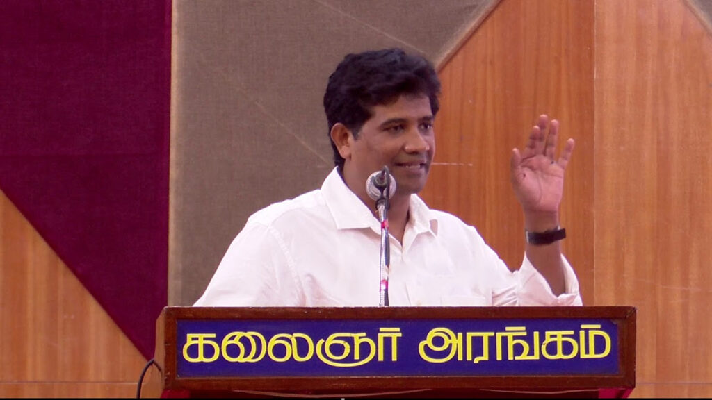 இந்த மாநாட்டில் பல்வேறு தலைப்புகளில் திமுகவின் முக்கிய தலைவர்கள் மற்றும் இளம் பேச்சாளர்கள் கலந்துகொண்டு உரையாற்றினர். அதன்படி, ஞாயிற்றுக்கிழமை மாலை நடைபெற்ற அமர்வில் ஆயிரம் விளக்கு தொகுதி திமுக எம்.எல்.ஏ எழிலன் நாகநாதன் பேசினார்.