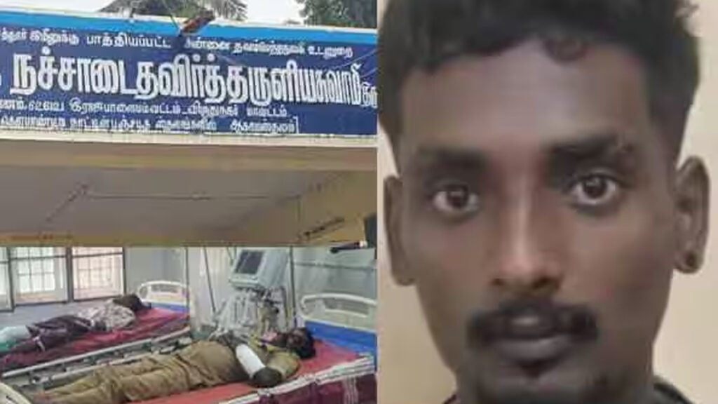 தொடர்ந்து, தனிப்படை போலீசார் வடக்கு தேவதானத்தைச் சேர்ந்த கணேசன் மகன் நாகராஜ் என்பவரை கைது செய்தனர். திருடப்பட்ட பொருட்களை மீட்கும் பொருட்டு, குற்றவாளியை சம்பவ இடத்திற்கு அழைத்து சென்றபோது, அவர் மறைத்து வைத்திருந்த அரிவாளை எடுத்து எஸ்.ஐ கோட்டியப்பசாமியை தாக்கி தப்ப முயன்றார்.