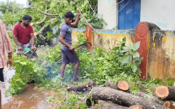 பலத்த மழை மற்றும் காற்று காரணமாக, கொத்தங்குடி ஊராட்சியில் மரம் முறிந்து விழுந்து மின் கம்பம் சேதம், மின்சாரம் துண்டிப்பு :-
