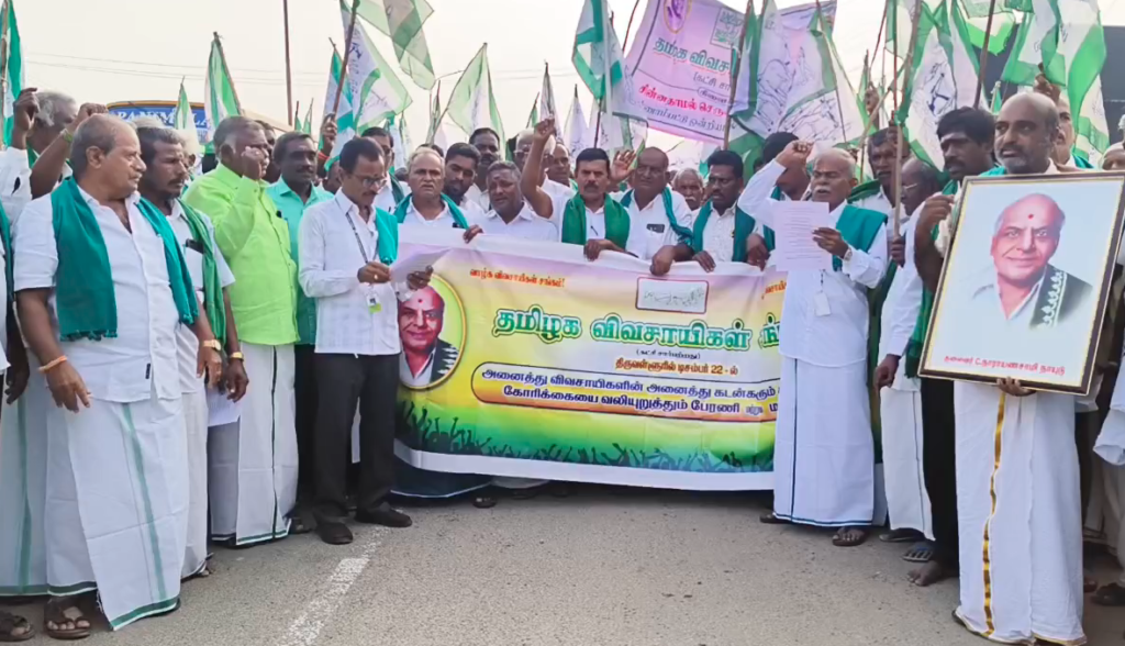 தமிழக விவசாயிகள் சங்கம் சார்பில் திருவள்ளூரில் விவசாய கடன்களை தள்ளுபடி செய்ய வேண்டும் என்ற கோரிக்கையை முன் வைத்து மாநாடு நடைபெற்றது. கூட்டுறவு மற்றும் தேசிய மயமாக்கப்பட்ட வங்கிகளில் விவசாயிகள் பெறப்பட்ட பயிர் மற்றும் பண்ணைக்கடன்களை தள்ளுபடி செய்ய கோரியும், ஆந்திரா, தெலுங்கானாவை போல் உற்பத்தி மானியமாக ஏக்கர் ஒன்றுக்கு 20 ஆயிரம் ரூபாய் வழங்கிட வேண்டும் எனவும், நெல் குவிண்டலுக்கு 4000 ரூபாயும், கரும்பு டன்னுக்கு 6000 ரூபாயும், கொப்பரை தேங்காய் கிலோ ஒன்றுக்கு 300 விலை நிர்ணயம் செய்ய வேண்டும் எனவும், வேளாண் விஞ்ஞானி எம் எஸ் சுவாமிநாதன் பரிந்துரையை உடனடியாக மத்திய அரசு அமல்படுத்த வேண்டும் எனவும், வன விலங்குகளால் உயிருக்கும் விவசாயிகளுக்கு இழப்பீடு தொகை 20 லட்சமாக உயர்த்தி வாரிசுதாரர்களுக்கு வழங்கிட வேண்டும் எனவும், தமிழக அரசு கொண்டு வந்துள்ள நில ஒருங்கிணைப்புச் சட்டம் 2023 ரத்து செய்ய வேண்டும் என்பன உள்ளிட்ட 18 அம்ச கோரிக்கைகளை வலியுறுத்தி திருவள்ளூர் பெரியகுப்பம் பகுதியில் இருந்து ஆயில் மில் பகுதி வரை 500-க்கும் மேற்பட்ட விவசாயிகள் பேரணியாக சென்றனர். பின்னர் ஆயில் மில் பகுதியில் உள்ள திருமண மண்டபத்தில் மாநாடு நடைபெற்றது. அதில் விவசாயிகளின் கோரிக்கைகள் குறித்து விவாதிக்கப்பட்டது. கடன் தள்ளுபடி செய்து முதல் கையெழுத்து போட வேண்டும், இல்லையேல் விவசாயிகள் உங்களை தள்ளுபடி செய்வார்கள் எனவும் விவசாயிகள் தெரிவித்தனர். கூட்டுறவு மற்றும் தேசிய மயமாக்கப்பட்ட வங்கிகளில் விவசாயிகள் பெறப்பட்ட பயிர் மற்றும் பண்ணைக்கடன்கள் முழுவதும் மத்திய, மாநில அரசுகள் நிபந்தனையின்றி தள்ளுபடி செய்ய வேண்டும் எனவும், பிப்ரவரியில் மதுரையில் கோரிக்கை மாநாடு நடத்தப்படும் எனவும் மாநாட்டில் தெரிவித்தனர்.
