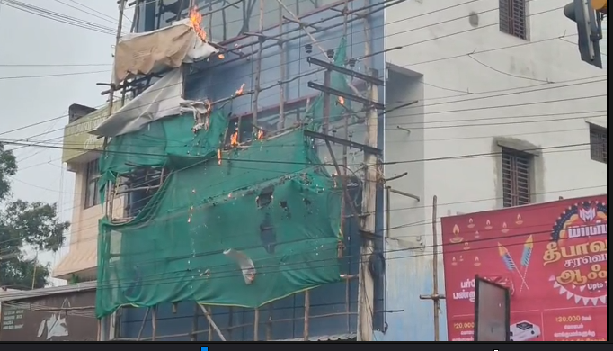 மயிலாடுதுறை மாவட்டம் மயிலாடுதுறை- கும்பகோணம் பிரதான சாலையில் அரசு மருத்துவமனைக்குச் செல்லும் வழியிலும், மகளிர் மேல்நிலைப்பள்ளி, தனியார் மேல்நிலைப்பள்ளி உள்ள இடம் அருகில் காந்திஜி சாலையில் சரவணன் ஆயில் மில் என்ற கடையின் முன்பு முன்தோற்ற வேலைப்பாட்டுக்காக மறைப்புக்காக அமைக்கப்பட்டிருந்த பேனர்கள் காற்றின் வேகத்தால், அருகில் இருந்த மின்கம்பியில் பட்டு உராய்வு ஏற்பட்டு தீ பிடித்து மளமளவென தீ பற்றி எரிய ஆரம்பித்தது. இதைக் கண்டு அப்பகுதியில் போக்குவரத்து பணியில் ஈடுபட்டிருந்த போக்குவரத்து காவலர்கள் மற்றும் பொதுமக்கள் இருவழி சாலையில் ஒரு வழிப்பாதையை தடை செய்து பள்ளி செல்லக்கூடிய மாணவர்களை மாற்று பாதையில் அனுப்பி வைத்தனர். உடனடியாக தீயணைப்புத் துறையினருக்கு தகவல் தெரிவிக்கப்பட்டு, விரைந்து வந்த தீயணைப்புத் துறையினர் மின் உராய்வால் ஏற்பட்ட தீயினை அணைத்ததால் பெரும் தீ விபத்து விபத்து தவிர்க்கப்பட்டது.