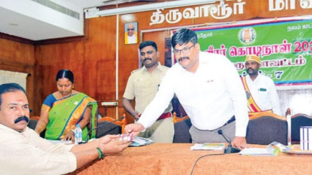 திருவாரூர்: இந்திய முப்படை வீரர்களின் தியாகத்தைப் போற்றும் வகையில் அனுசரிக்கப்படும் படைவீரர் கொடிநாள் தினத்தை முன்னிட்டு, திருவாரூர் மாவட்ட முன்னாள் படைவீரர்கள் நலத்துறை சார்பில் நலத்திட்டம் வழங்கும் நிகழ்ச்சி மாவட்ட ஆட்சியர் அலுவலகத்தில் நடைபெற்றது. இதில், மாவட்ட ஆட்சியர் மோகனச்சந்திரன் அவர்கள் கொடிநாள் நிதி வசூலைத் துவக்கி வைத்ததுடன், 24 பயனாளிகளுக்கு ரூ.7 லட்சம் மதிப்பிலான நலத்திட்ட உதவிகளை வழங்கினார்.