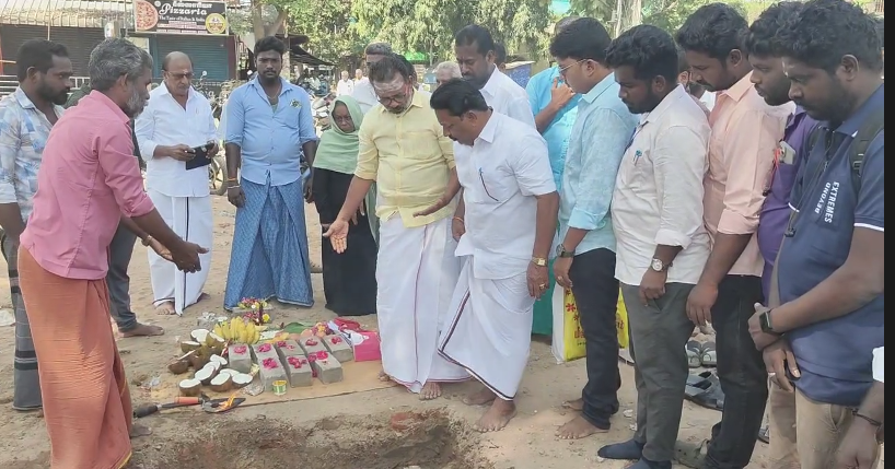 மயிலாடுதுறை மாவட்டம் மயிலாடுதுறை காவல் நிலையம் அருகே நகராட்சிக்கு உட்பட்ட வணிக வளாகம் இயங்கி வந்தது இக்கட்டிடம் மிகவும் பழுதடைந்ததன் காரணமாக கடந்த சில மாதங்களுக்கு முன்பு இடித்து அகற்றப்பட்டது இதனைத் தொடர்ந்து வணிகர்கள் மற்றும் பொதுமக்கள் பயன்பாட்டிற்காக மயிலாடுதுறை நகராட்சியின் சார்பாக ரூபாய் 90 லட்சம் மதிப்பீட்டில் புதிய வணிக வளாகம் கட்டப்படும் என அறிவிக்கப்பட்டிருந்தது அதன்படி இன்று புதிய வணிக வளாகம் கட்டுவதற்கான பூமி பூஜை விழா நடைபெற்றது மயிலாடுதுறை நகர மன்ற தலைவர் செல்வராஜ் தலைமையில் நடைபெற்ற விழாவில் நகர் மன்ற துணைத் தலைவர் சிவகுமார் நகர்மன்ற உறுப்பினர்கள் நகராட்சி அதிகாரிகள் கலந்து கொண்டனர்