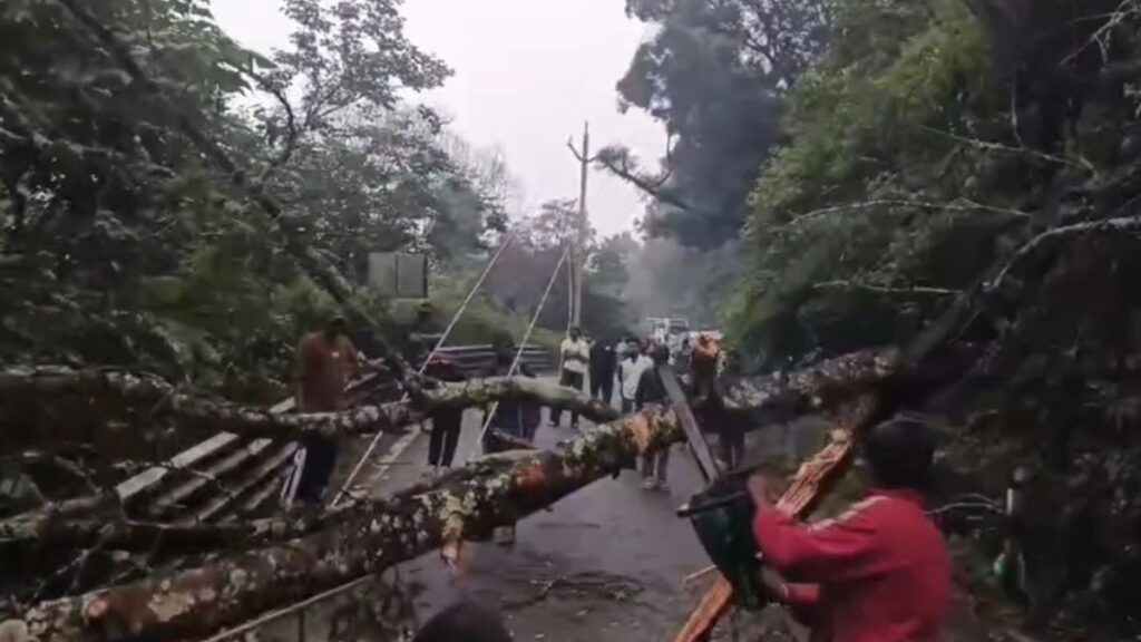 மேல்பள்ளம் அருகே உள்ள பிரதான மலைச்சாலையில், ராட்சத அளவிலான ஒரு மரம் திடீரென வேரோடு முறிந்து உயர் அழுத்த மின்கம்பிகளின் மீது சரிந்து, பின்னர் சாலையின் குறுக்கே விழுந்தது. மரக்கொம்புகளும் மின் கம்பிகளும் சாலையை மூடியதால், இரு திசைகளிலும் வாகனங்கள் நீண்ட வரிசையாக நின்று சுமார் மூன்று மணி நேரம் சிக்கிக் கொண்டன.