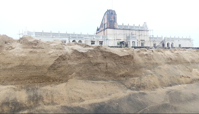 மயிலாடுதுறை மாவட்டம் சுற்றுவட்டார பகுதிகளில் கடந்த இரண்டு நாட்களாக கனமழை பெய்து வருகிறது குறிப்பாக தரங்கம்பாடி தாலுக்கா கடலோரப் பகுதிகளில் கனமழை பெய்து வருகிறது தொடர்ந்து வானம் மேகமூட்டத்துடன் காணப்படுகிறது தரங்கம்பாடி மற்றும் கடலோரப் பகுதியில் வழக்கத்தைவிட கடல் சற்று சீற்றத்துடன் காணப்படுகிறது மேலும் தரங்கம்பாடி கடற்கரையில் வரலாற்று சின்னமான டேனிஷ் கோட்டை அமைந்துள்ள பகுதியில் கடல் சீற்றம் மற்றும் கனமழை காரணமாக கடற்கரையில் மண் அரிப்பு ஏற்பட்டுள்ளது ஆண்டுதோறும் கடல் சீற்றம் மற்றும் கனமழை மண்ணரிப்பு காரணமாக டேனிஷ் கோட்டை பாதிக்கப்படும் சூழல் உள்ளது கடல் சீற்றம் மண்ணரிப்பால் வரலாற்று சின்னமான டேனிஷ் கோட்டை பாதிக்கப்படாமல் நிரந்தர பாதுகாப்பு நடவடிக்கை எடுக்க வேண்டும் என்பது சமூக ஆர்வலர்களின் கோரிக்கையாக உள்ளது.