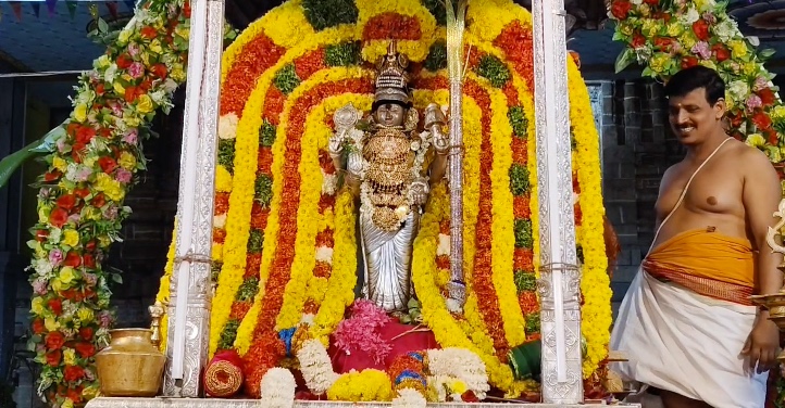 என்ற பாடலை பாடினர். பாடலின் முடிவில் நிலவு போன்ற தோற்றத்தில் அமைக்கப்பட்ட மின் விளக்கு எரியவிடப்பட்டது. தொடர்ந்து அம்பாளுக்கு மஹா தீபாராதனை நடத்தப்பட்டு 100 பாடல்கள் பாடி நிறைவு செய்யப்பட்டது. பின்னர் சோடச தீபாரதனை மகாதீபாரதனை நடைபெற்றது. பின்னர் ஶ்ரீஅபிராமி அம்மன் அபிராமி பட்டருடன் வீதியுலா காட்சி நடைபெற்றது.