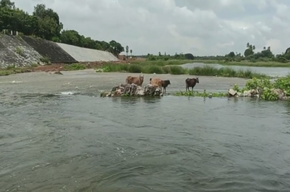 இந்நிலையில், அபாய சங்கு ஒலிக்காமல் தண்ணீர் திறக்கப்பட்டதால், கொசஸ்தலை ஆற்று பகுதியில் மேய்ச்சலுக்காக வந்த மாடுகள், வெள்ளத்தில் சிக்கிக் கொண்டன. பின்னர் அவை மெதுவாக ஆற்றை கடந்து, கரையை வந்தடைந்தன.