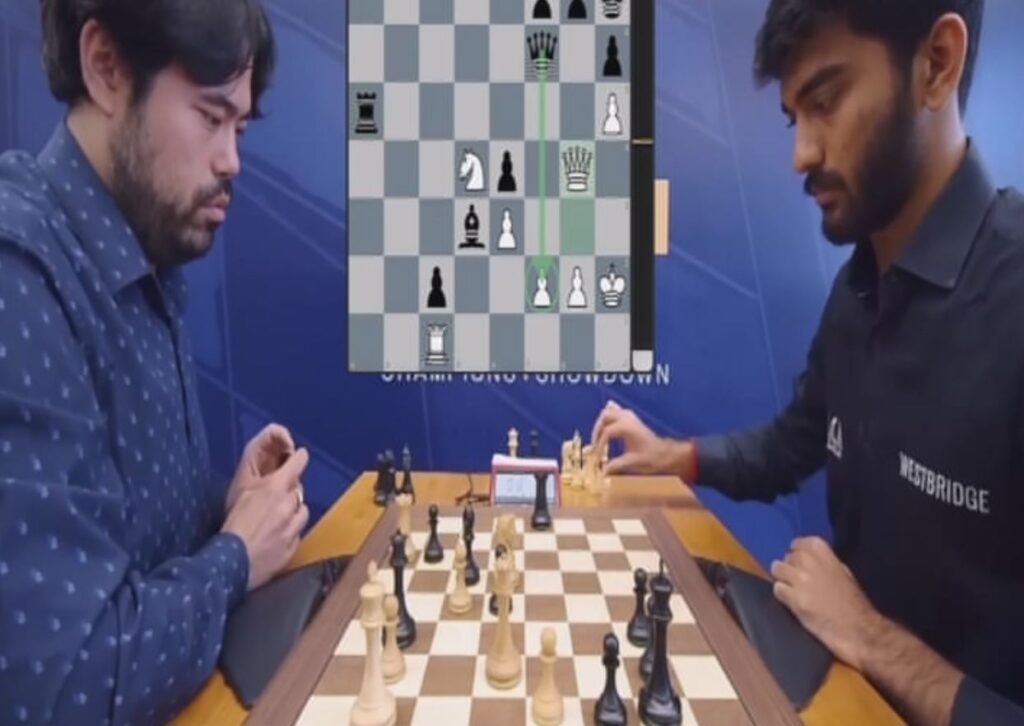 கடந்த இரண்டு வாரங்களுக்கு முன்பு நடந்த போட்டியில் குகேஷை வீழ்த்திய ஹிகாரு, குகேஷின் ராஜாவை தூக்கி எரிந்து தனது வெற்றியைக் கொண்டாடினார். இது சமூக வலைதளங்களில் விமர்சனங்களைப் பெற்றது.