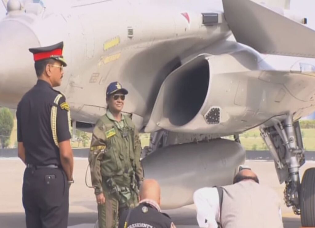 இந்நிலையில் அம்பாலா விமானப்படை தளத்திலிருந்து, ரஃபேல் போர் விமானத்தில், திரௌபதி முர்மு பயணம் செய்தார். பாதுகாப்பு கவச உடைகள் அணிந்து, விமானத்தில் பறந்தார்.
