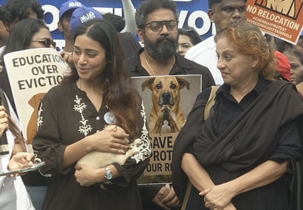 பேரணியில் நடிகையும், நாய்களுக்கு ஆதரவாக குரல் கொடுத்தவருமான நிவேதா பெத்துராஜூம் கலந்து கொண்டார். பேரணியைத் தொடர்ந்து செய்தியாளர்களிடம் பேசிய அவர், தெரு நாய்களைப் பிடித்து காப்பகங்களில் அடைத்தால், அவை ஒன்றுக் கொன்று, சண்டையிட்டு செத்து விடும் என்பதால், உரிய முறையில் தடுப்பூசி செலுத்திய பின்னர், அதே இடத்தில் விட்டு விட வேண்டும் என்றார்.