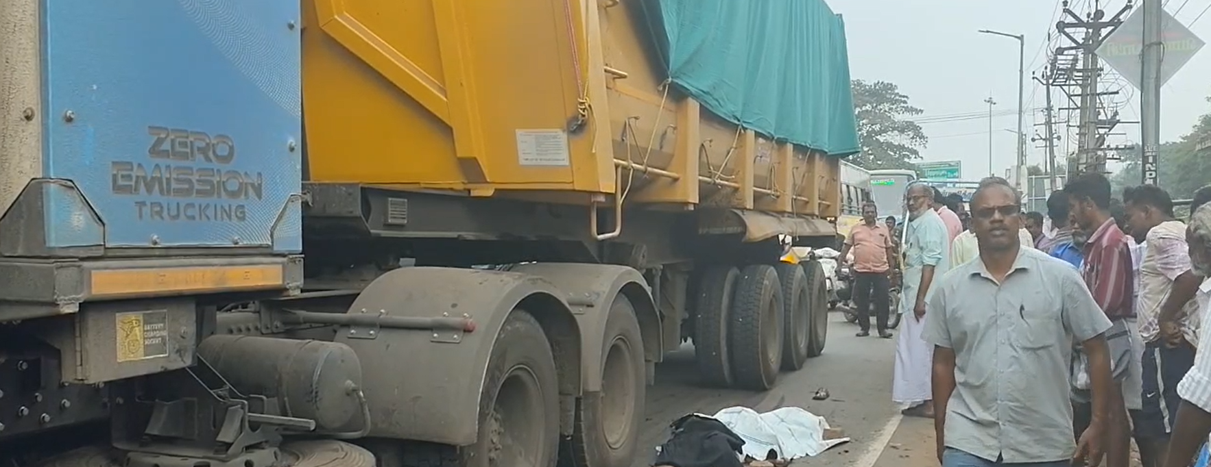 இதில் கொரடாச்சேரி அருகே உள்ள வடக்குமாங்குடி பகுதியை சேர்ந்த ராஜாலிங்கம் என்பவரது மகன் மதியழகன் 50 என்பவர் சம்பவ இடத்திலேயே உடல் நசுங்கி உயிரிழந்தார்.தகவல் அறிந்து வந்த திருவாரூர் நகர போலீசார் உடலை மீட்டு பிரேத பரிசோதனைக்காக திருவாரூர் அரசு மருத்துவக் கல்லூரி மருத்துவமனைக்கு அனுப்பி வைத்தனர்.மேலும் லாரி ஓட்டுனரை பிடித்து விசாரணை மேற்கொண்டு வருகின்றனர்.இதேபோல இன்று காலை நீடாமங்கலம் பகுதியில் கல்லூரி மாணவி மீது லாரி மோதி சம்பவ இடத்திலேயே பலியானார்.ஒரே நாளில் திருவாரூர் மாவட்டத்தில் இரு வேறு இடங்களில் லாரி மோதி இருவர் பலியான சம்பவத்தால் திருவாரூர் மாவட்டமே சோகத்தில் மூழ்கியது.