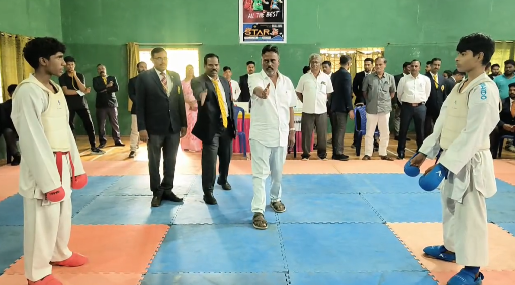 விழுப்புரம் மாவட்டத்தில் ஸ்போர்ட்ஸ் கராத்தே-டூ அசோசியேஷன் சார்பில் 5-வது மாவட்ட கராத்தே போட்டி இன்று காலை நடைபெற்றது. இந்தப் போட்டி, விழுப்புரம் மாவட்ட ஆட்சியர் பெருந்திட்ட வளாகத்தில் அமைந்துள்ள டாக்டர் எம்.ஜி.ஆர். உள்விளையாட்டு அரங்கில் நடைபெறுகிறது.போட்டியில் பல்வேறு பிரிவுகளைச் சேர்ந்த இளம் மற்றும் மூத்த கராத்தே வீரர்கள் பங்கேற்கின்றனர். மாவட்ட அளவிலான திறமைகளை வெளிப்படுத்தும் முக்கியமான விளையாட்டு நிகழ்வாக இது கருதப்படுகிறது. நிகழ்ச்சியில் முன்னாள் நகர மன்ற தலைவர் இரா. ஜனகராஜ் போட்டியில் பங்கேற்ற வீரர்களுக்கு வாழ்த்துகள் வழங்கி வெற்றியாளர்களுக்கு பரிசுகள் வழங்கினர். D. மெர்ஷன் ராபின், K.C. அழிவாசன் — மாவட்ட இளைஞர் நலன் மற்றும் விளையாட்டு அலுவலர், V. கலியமூர்த்தி, Rtn.Dr. P. அன்பழகன் — தலைவர், Rotary Club, Rtn. Dr. B.S. சுரேஷ்குமார் — செயலாளர், Rotary Club உள்ளிட்ட பலர் உடன் இருந்தனர். நீ வெற்றி பெறும் மாணவர்கள் சென்னையில் நடைபெற உள்ள மாநில அளவிலான போட்டிகளில் கலந்து கொள்ள உள்ளனர். இந்தப் போட்டியின் மூலம் மாவட்டத்தில் மாற்றுத்திறன், ஒழுக்கம், உடல் வலிமை மற்றும் விளையாட்டு ஆர்வம் மேம்படும் என ஏற்பாட்டுக் குழுவினர் தெரிவித்துள்ளனர்.