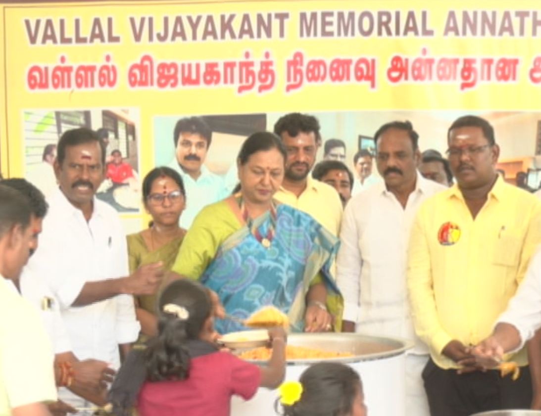 தேமுதிக இளைஞரணி செயலாளர் விஜய பிரபாகரனின் பிறந்த நாளை முன்னிட்டு சென்னை கோயம்பேட்டில் உள்ள விஜயகாந்தின் நினைவிடத்தில் குடும்பத்தினருடன் பிரேமலதா மரியாதை செலுத்தினார்.