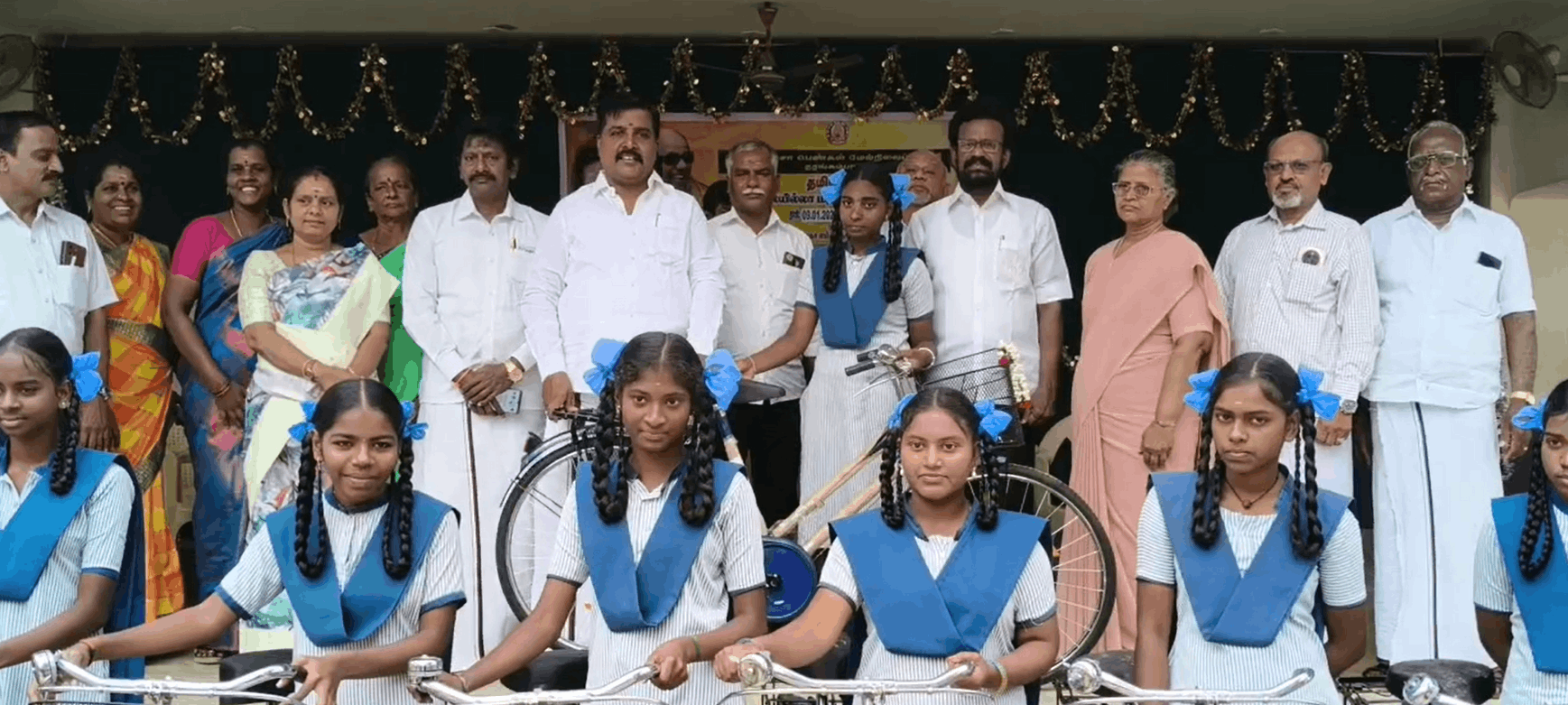 தரங்கம்பாடியில் உள்ள புனித தெரசா மகளிர் மேல்நிலைப்பள்ளியில் 11 ஆம் வகுப்பு பயிலும் 190 மாணவிகளுக்கு தமிழக அரசின் விலையில்லா மிதிவண்டிகள் மற்றும் 10 மற்றும் 12 ஆம் வகுப்பு பொதுத்தேர்வு எழுதும் 500 மாணவிகளுக்கு எம் எல் ஏ நிவேதாமுருகன் “வெற்றி நிச்சயம்” என்ற கையேடு வழங்கினார்.
